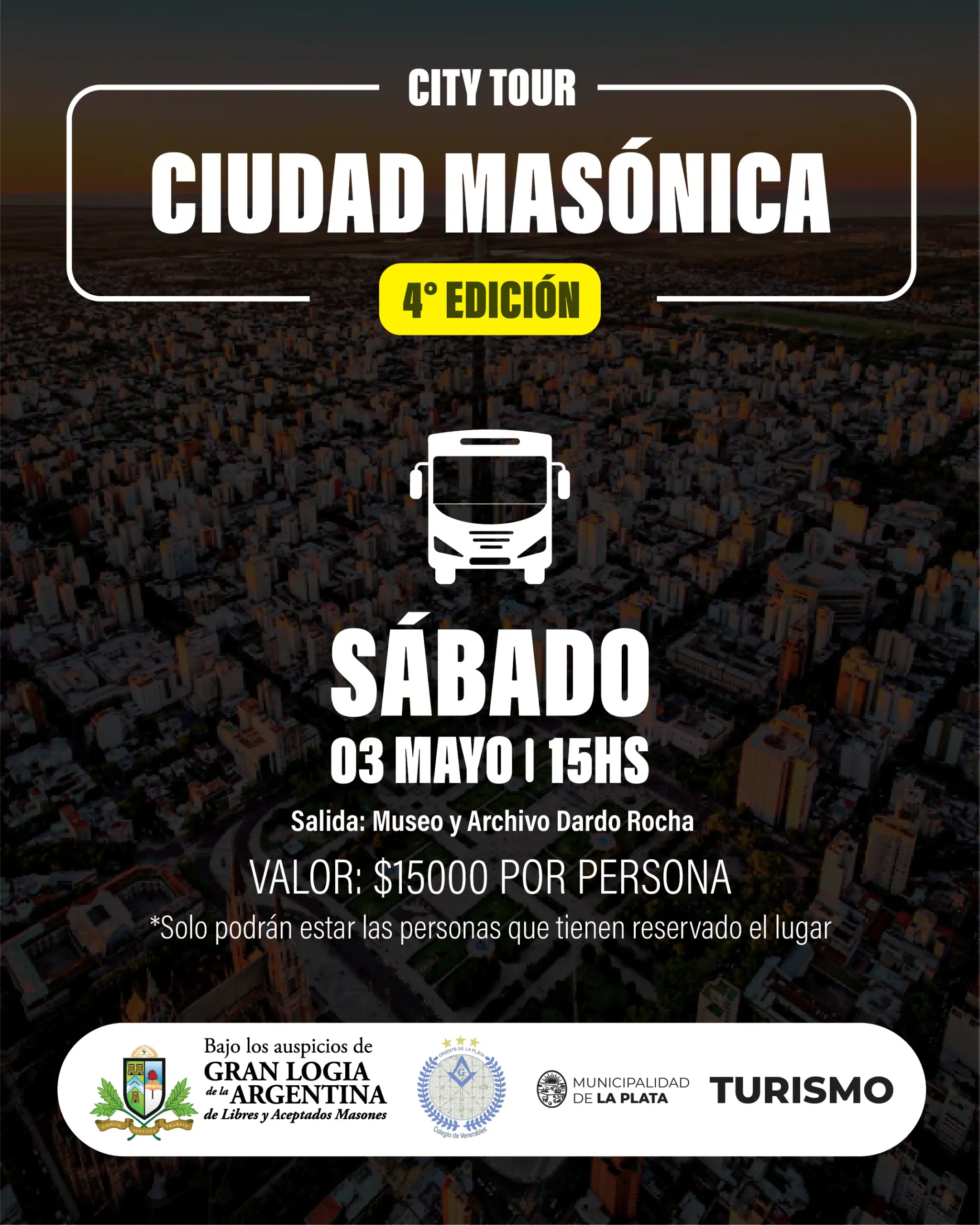 La guiada masónica explora la historia oculta de La Plata a través de un recorrido en bus con una perspectiva única. Estará a cargo de los integrantes de la Respetable Logia La Plata N° 80, Ing. Fernando Diego Santolaria (Maestro Mason) y el Periodista e Investigador Martin Ezequiel Epeloa (Maestro Mason).